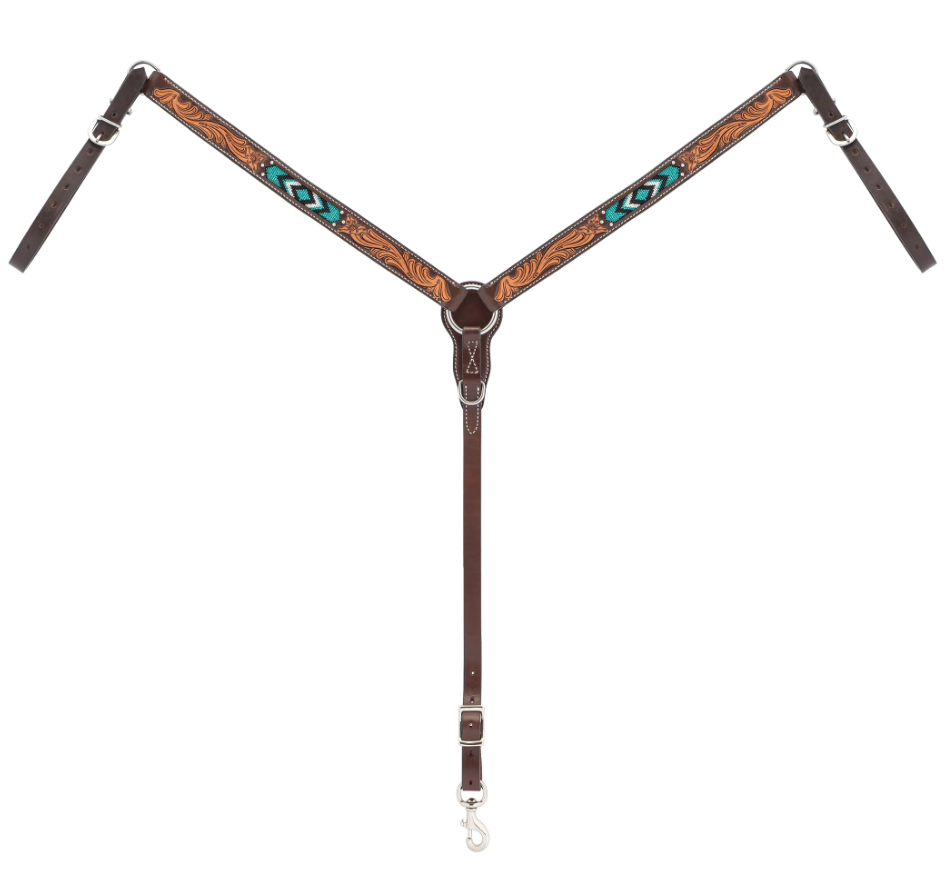 • Dark-oiled horse straight 1-1/4" breast collar with intricate carved floral accents highlighted with tan stain