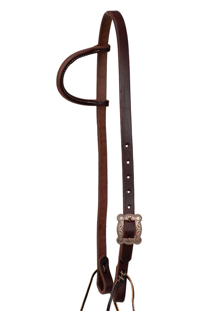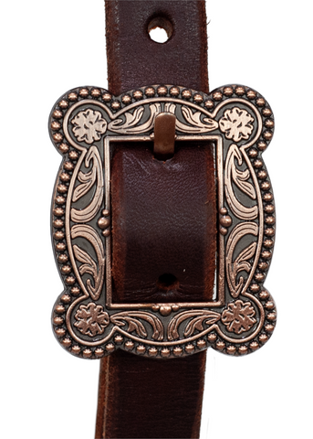 One Ear Headstall - 3/4" - Antique Copper Dotted Scroll Buckle