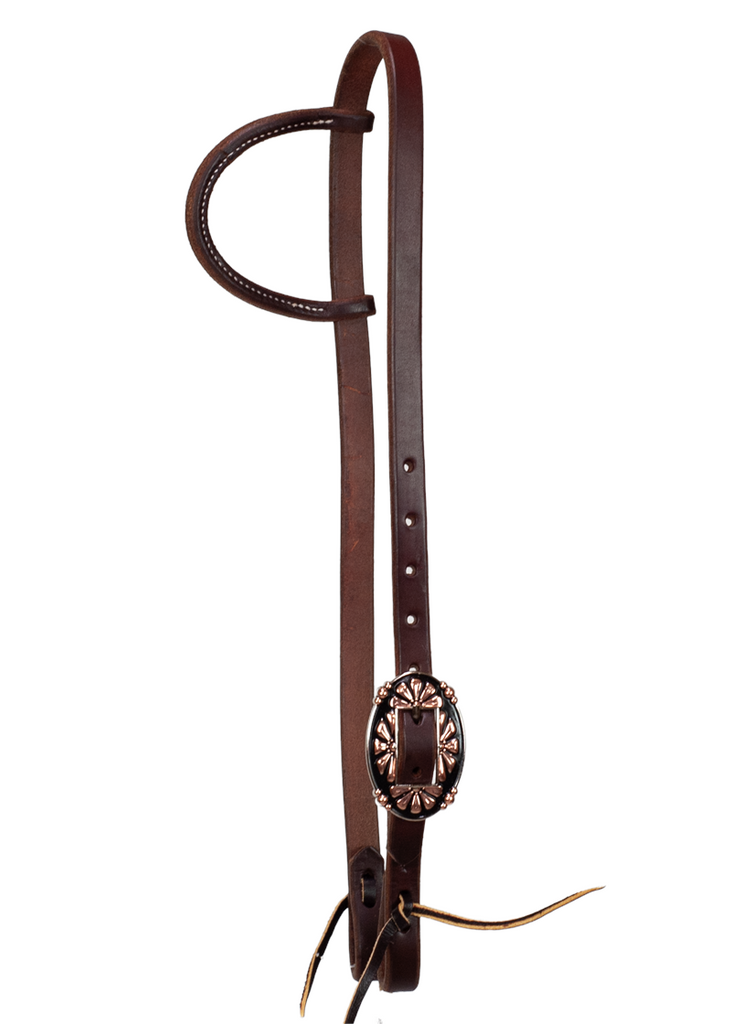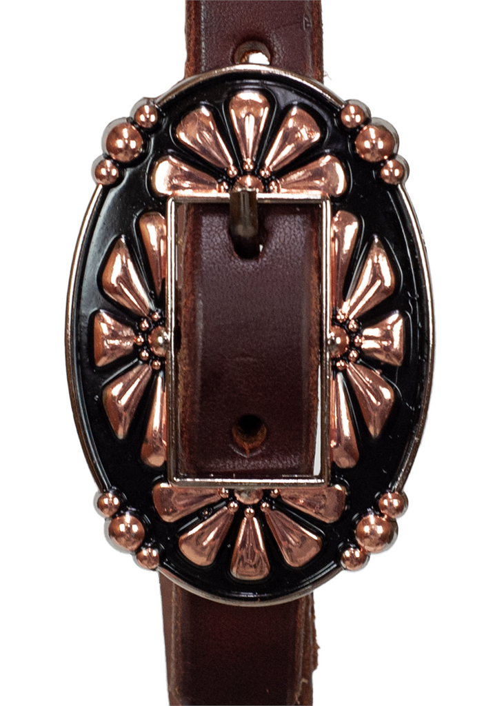 One Ear Headstall - 3/4" - Large Black & Copper Flower Buckle
