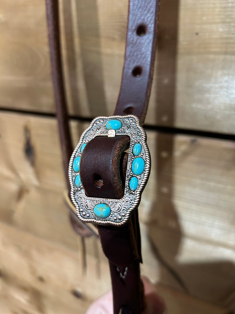 3/4" Slip Ear Headstall - Small Antique Copper & Turquoise Buckle