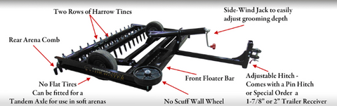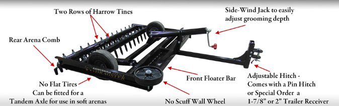 CONTERRA ARENA DRAGSTER-XR – Engineered for Efficient Performance. Conterra’s Arena Dragster is designed to pull behind ATVs, UTVs, Garden and Compact Tractors. Featuring our revolutionary Depth Control System the Arena Dragster allows you to easily and consistently control your arena depth over the entire surface. The swept tine design enables the Arena Dragster to be an aggressive groomer for sandy and sandy-loam arena conditions. With the Easy-to-Use Side-Wind Jack, adjust your Arena Dragster-XR grooming depth in one simple movement, in a matter of seconds. Once engaged, a rear Arena Comb and two harrow tine bars, go to work dramatically enhancing the floating and levelling finish on your arena. The Result: A consistent, level arena every time.