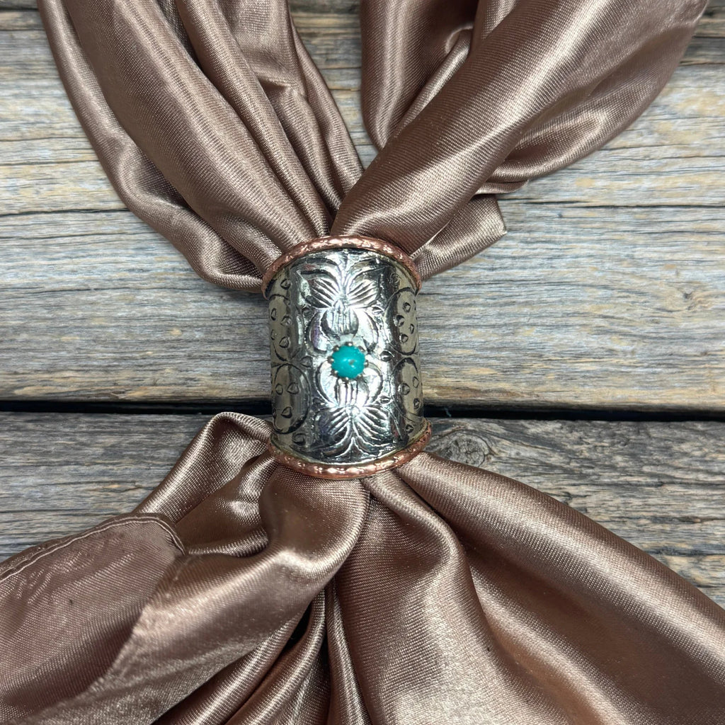 Assorted German silver engraved wild rag slides - the perfect rustic look -