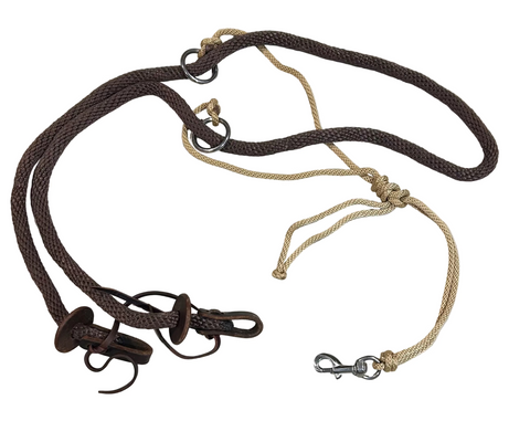 The Performance Rein is made of 5/8 inch solid braid nylon rope in a 7 foot length.