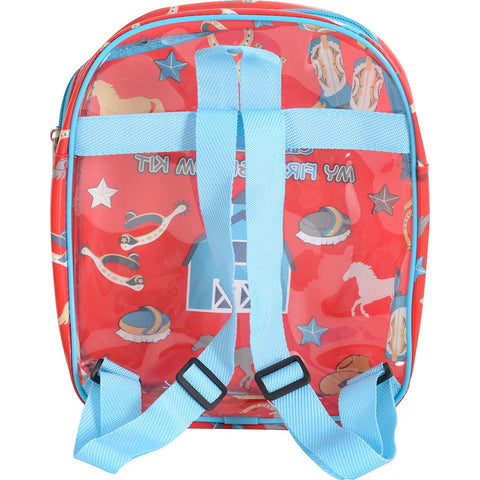 Perfectly sized backpack with adjustable straps to fit most kids. Designed especially for little hands learning grooming basics. Complete with mane and tail comb and brush, small rubber curry comb, sponge, and small and large body brushes.