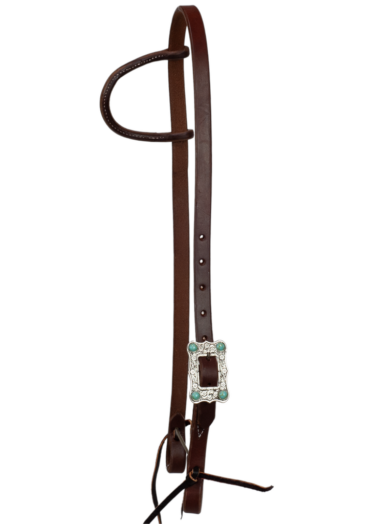 One Ear Bridle - Silver Daisy & Turquoise Stone HDST-714