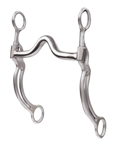 This low port mouthpiece is made of 1/2" sweet iron with inlaid copper strips in the center of the port. The height of the port measures 1 1/3" which doesn't quite reach the pallet on most horses. This port allows even pull and is considered mild in severity.